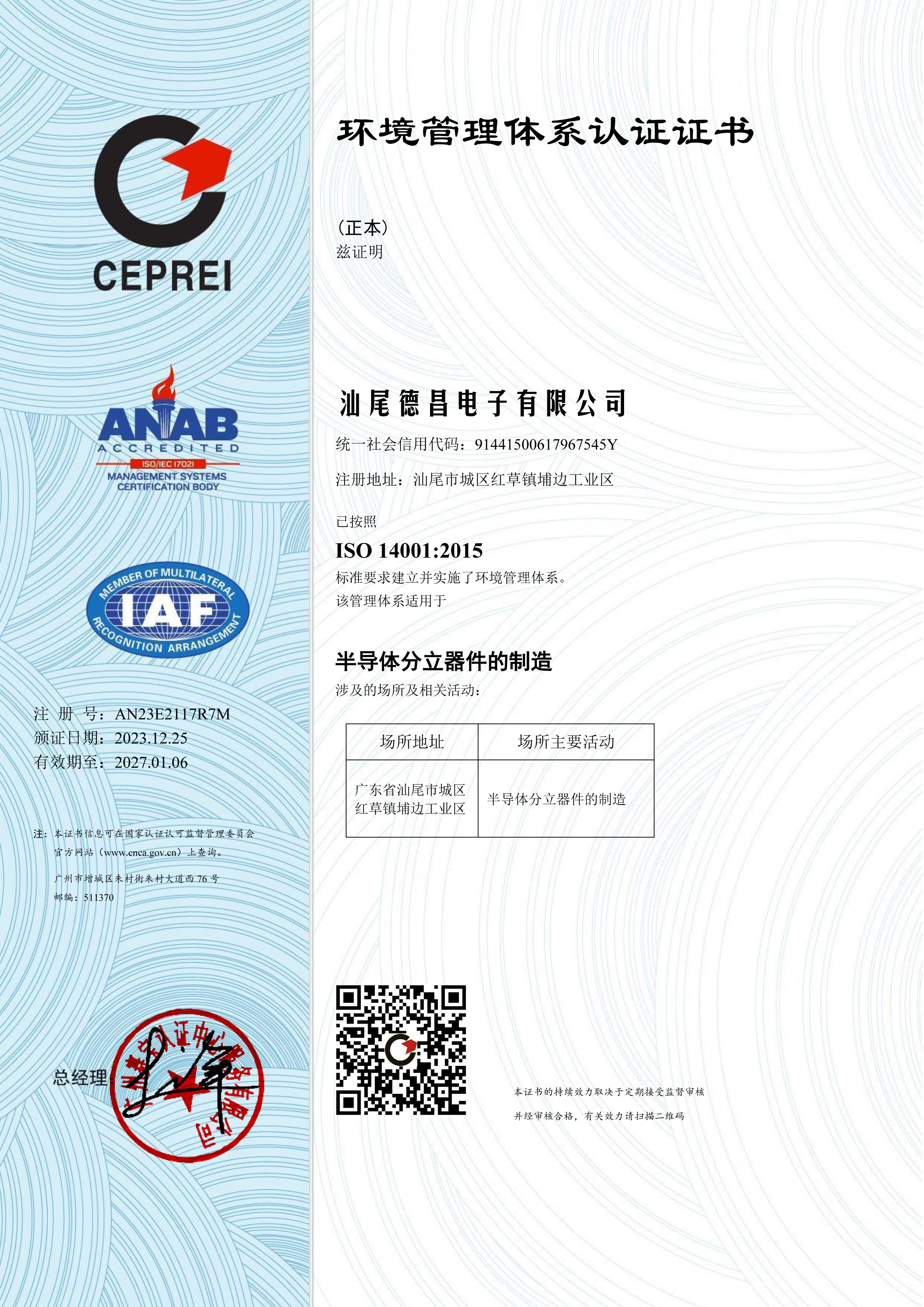 環(huán)境證書
